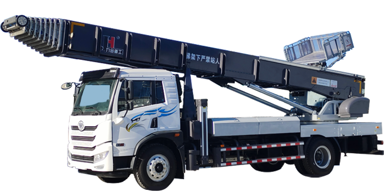 本公司55米云梯車最大作業(yè)高度55米,相當(dāng)于18層樓高,新型斷面梯臂保證產(chǎn)品質(zhì)量,最大承載貨物重量400公斤。 底盤采用重汽豪沃底盤,故障率低,可靠性高。 貨架采用新型斷面鋁合金結(jié)構(gòu)形式質(zhì)量可靠,安全有保證; 車輛支腿采用上海寶鋼700號(hào)高強(qiáng)鋼板,保證整車支撐安全。